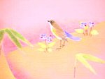 ■ルリビタキ(ピンクの付け下げ) きものの地色のピンクがとてもきれいです。 このきものを着る方を豊かで華やかに包んでくれます。 鳥の可愛さを再確認させられるきものです。